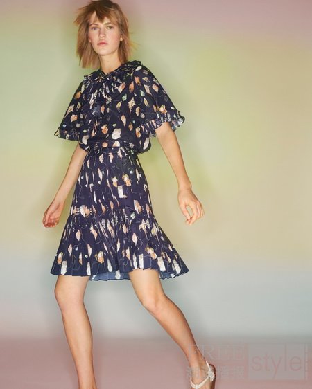 以真丝双绉面料打造的贝壳印花上衣蕴含设计细节,双层褶皱堆叠的领部设计呈倒三角形延伸至胸前,美学妙想带来别样的趣味立体感。具有解构主义风格的印花蝴蝶袖连衣裙,运用夸张的肩颈局部设计抢占视线,而散摆裙身平衡了量感衣袖的膨胀感,轻松拥有丝丝隽永的法式气质。