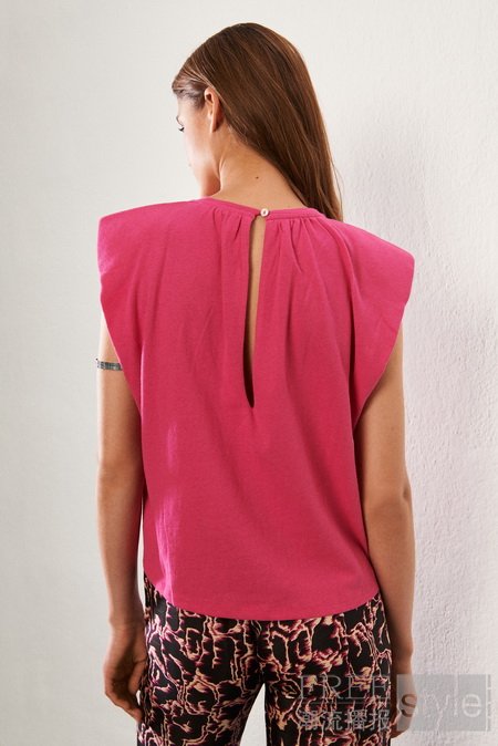 慵懒和惬意同样也是法式风情的注脚。在同样热情的粉色春风拂过之际,TINA 无袖上衣舒展双臂,不拘小节地肆意享受这个明媚的午后。极具小心机的垫肩使轻薄柔软的布料依然保持轮廓感,背后若隐若现的开口像是在诉说女生的小心事。