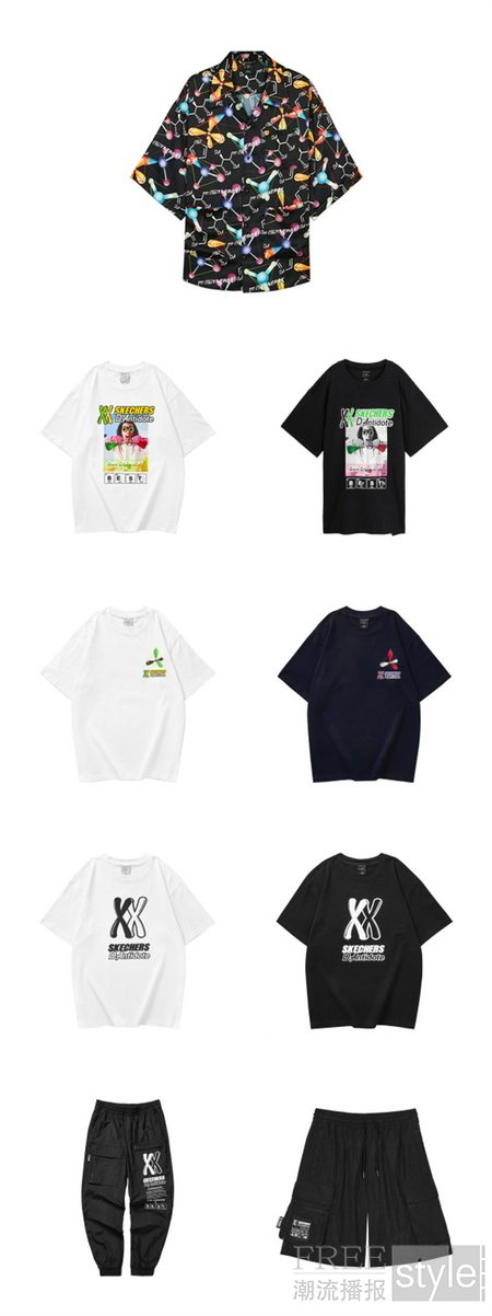 此次联名合作中,斯凯奇为男士选用经典宽松版型的T恤,均以SKECHERS X D-ANTIDOTE联名主题印花点缀,亮眼吸睛,主题明确。同系列的满印黑色衬衫,在低调中张扬,为时尚潮人们打造舒适运动与个性潮流格调并存的穿着体验。