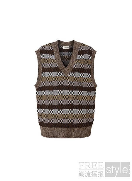 V领复古宽松套衫,黑棕粉黄白提花多种色彩交织塑造摩登意趣,宽松落肩设计流露慵懒随性的法式风格。V领马甲, Oversize 廓形融合内敛格纹展现文雅风度,多样叠穿方式尽显秋冬自在个性。