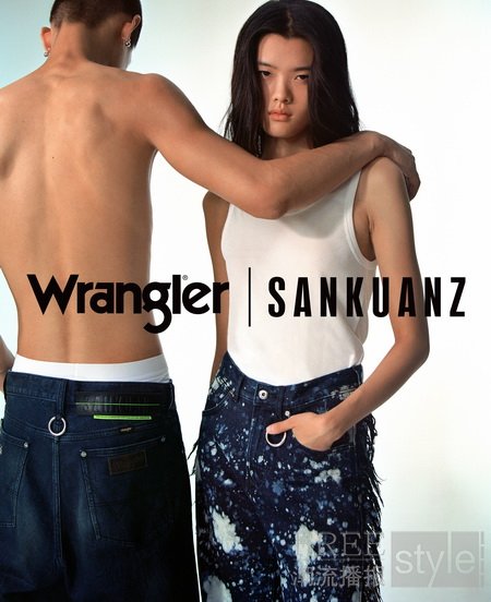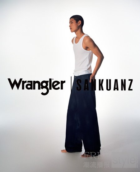 SANKUANZ 与美国经典牛仔品牌 Wrangler 开展合作系列,推出两款上衣及裤装,以更具实验性的眼光延续牛仔单品的革新精神。
