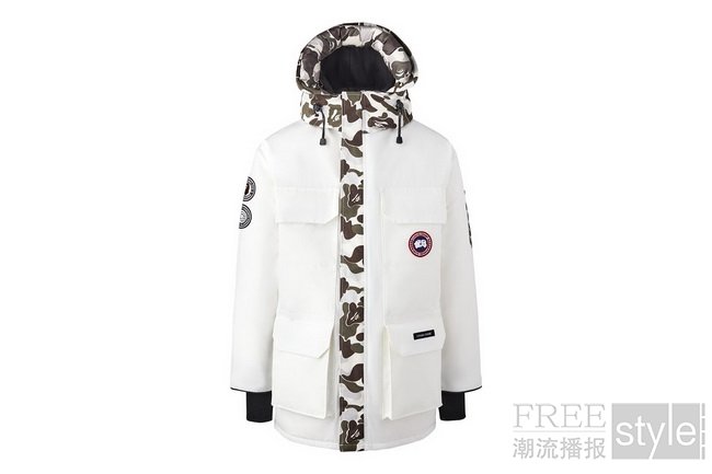 灵感来自CANADA GOOSE加拿大鹅为加拿大北部飞行员设计的CHILLIWACK飞行员夹克。两侧手臂位置饰以彰显三方联名身份的LOGO刺绣布贴,ABC CAMO和ABC SNOW CAMO两种款式配色为冬日穿搭提供更多选择。在服饰性能上,延续了CHILLIWACK飞行员夹克原始优异的专业性能,加固肘部以增强易磨损区域的耐用性;配备双肩免提携带,解放双手;五个外部口袋,最大程度增加实用性。