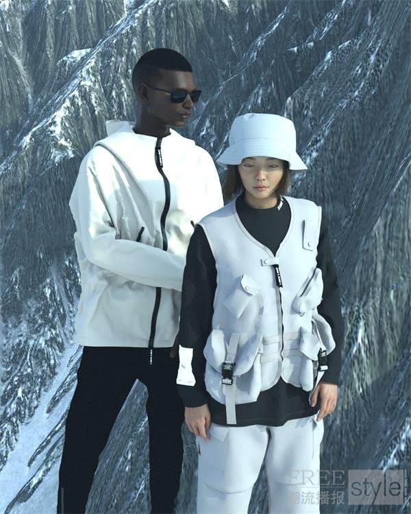 大片中背景为3D VFX 雪山风景,诞生于虚拟世界的探险者身处雪山,寻找着雪羊的踪迹,途中不断发生着不可思议的奇遇。他们身着以实物进行3D扫描输出而制成的服装单品,使用生物识别技术制作出虚拟动画,这种新颖独特的时尚展示刺激着我们的感官,让想象力的界限被打破,诠释出本季早春系列产品探索、无畏的精神。