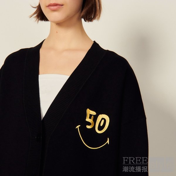 在过去的几年里,SANDRO与Smiley每年都保持着愉快的合作关系。为了纪念这一里程碑式的周年庆典到来之际,SANDRO将这独一无二的联名运用在了明星产品上。Smiley 50周年設計的特別版女装,将Sarah Andelman提出的 ‘Take the Time to Smile’ 宣传语,以及复古风格的微笑刺绣和毛毡贴布饰于廓形针织羊毛开衫之上。这款产品将在老佛爷百货公司独家出售。此外,还会推出带有Smiley标语: ‘No Bad Day with Smiley’和 ‘A Smile is the prettiest thing you can wear’ 的三款短袖与两款带有微笑印花的袜子。