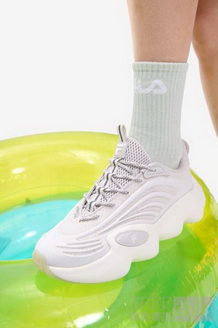 全新FILA FUSION RAY III 放射线3代“夜光鞋”从海洋中的光影变换和水母的仿生结构中汲取灵感,延续“放射线”的流动性线条元素,打破传统球鞋设计,以底面一体的形式,采用飞织面料打造,一方面深度诠释“未来”理念,另一方面也带来透气脚感,更适合季节穿着。