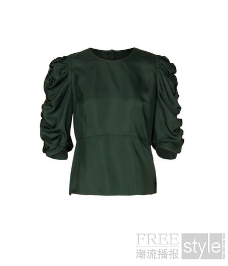 墨绿衬衫采用大廓型袖部设计,将复古的维多利亚细节和趣味植物造型融合,手工褶袖更增造型感和精致度;卡其色经典阔腿裤以无腰头设计增强一体性,新疆长绒棉织造的细腻纹路带来舒适穿着感。