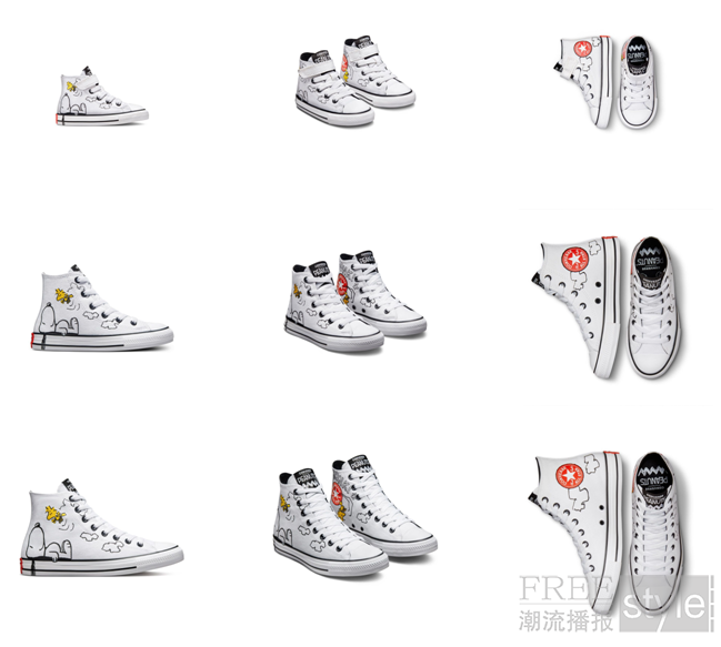 该系列召集《Peanuts》里的经典角色-查理·布朗、史努比、糊涂塌客等一众可爱的伙伴们,将他们令人难忘的日常故事刻画于Converse的定制鞋款和服装配饰上,其中有以糊涂塌客形象印满整个鞋身的Chuck 70;查理·布朗、史努比等形象跃然于经典帆布面料上的Chuck Taylor All Star;充满定制细节和俏皮图案的反毛皮One Star。除了成人鞋款外,此次系列还专门为部分鞋款提供了青少年和儿童尺码。让这些经典鞋款唤醒你纯真而动人的童年回忆时,也将这群惹人喜爱的“花生帮”成员介绍给新一代的快乐青年!