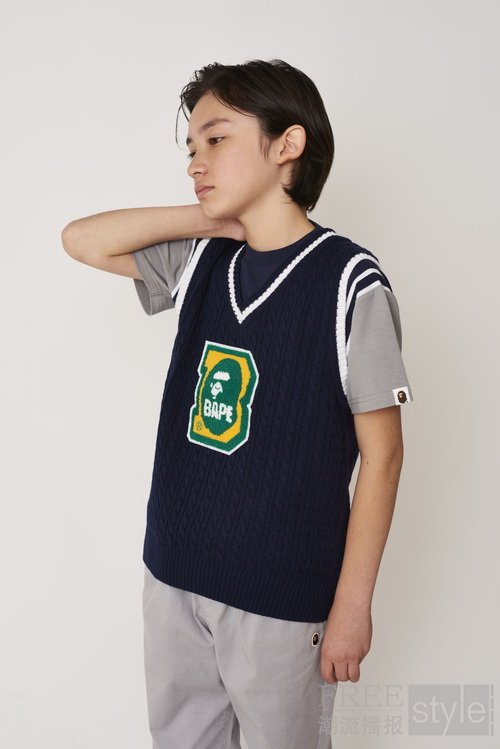 童装校园系列主打复古风格,涵盖户外探险、半正式场合和日常生活等不同场景所需着装。从休闲装到正式装,在BAPE® CHECK怀旧格纹图案的演绎下,呈现出既矜持又俏皮的可爱反差感。以复古色彩为设定的校园灵感系列亦推出COLLEGE LOGO休闲装,拥有丰富的款式选择。此外,童子军系列亦推出了户外探险服饰,涵盖饰有1ST CAMO口袋的衣裤、搭载围巾印花设计的短袖以及可斜挎多功能背包。