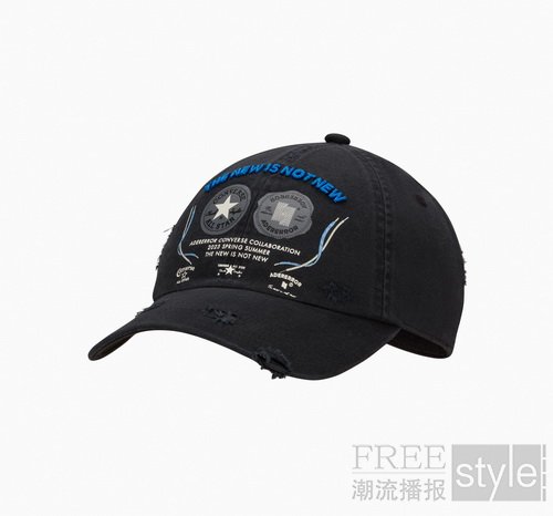 棒球帽设计融合了本系列的各类精致细节,从凸起感刺绣、丝网印花到缎面刺绣工艺,从帽檐破洞磨损细节到镶嵌于背部皮革背带的联名金属扣,处处彰显品牌经典美学。