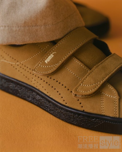 鞋款方面,此番PUMA x NOAH联名系列以PUMA经典Suede Classic Velcro鞋款为蓝本,焕新释出金棕色和海军蓝两款配色。细节上,新品采用皮革材质,以烫金PUMA字样加持鞋面魔术贴,并于鞋身运用孔眼设计呈现PUMA跑道标志,尽显复古质感;后跟处则缀有NOAH经典十字LOGO,充分彰显鞋款联名身份。