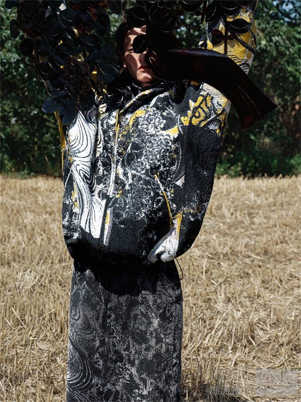 低调黑灰色基底的廓形T恤搭配裤装,当穿着者行走时,廓形的利落与纹样的流动、色块的张力与面料的细腻质感相互作用,让静态服饰成为更生动的呈现“皮影舞台”——东方意境不再是浮于表面的符号堆砌,而是化为可穿着的现代时尚,在“古典符号与现代剪裁”的混搭中实现了完美平衡。