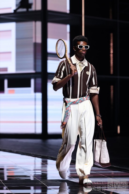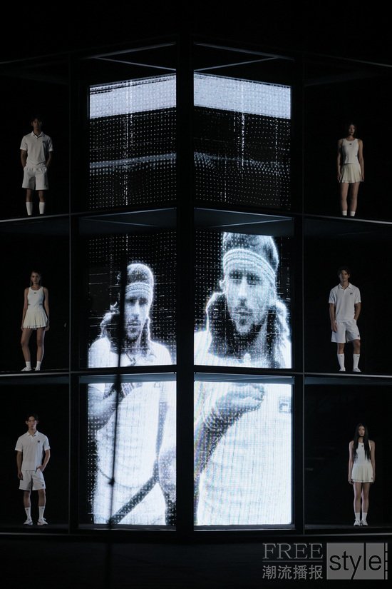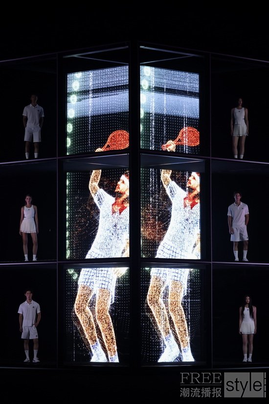 以网球赛场为灵感打造的秀场,构建跨越时空的沉浸式体验