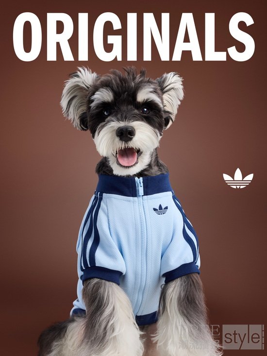 宠物版本的运动服设计源于品牌经典的复古运动外套,再度延续了 “宠物亲子装”的概念,将人宠之间的情感联结通过穿搭具象化演绎。高领设计与加厚布料更合适在天气转凉后穿着,双面弹力针织和宽松剪裁方便宠物自由活动。黑、蓝、绿、粉四种经典配色呼应 adidas Originals 的多元风格,胸前精致刺绣三叶草 LOGO 搭配背后胶印标志,充分展现运动与潮流的双重气质。