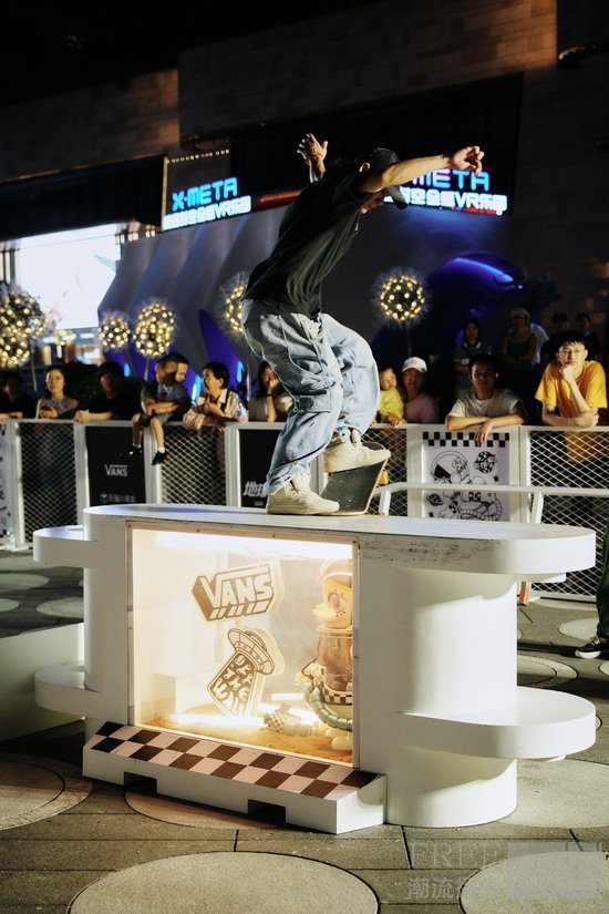 活动首日,Vans 倾力打造的夜滑圣地吸引了无数来往游人关注。带有SPACE MOLLY元素的透明出发台以嘻哈涂鸦风格还原街头氛围,霓虹灯带映照内嵌 1000% MEGA MOLLY 的滑板障碍,吸引一众滑手前来挑战。Vans 签约运动员率先开板,奉上一场夜色下的高能比拼:从 Box 果酱大比拼的极限创意,到 Bank to Bank 的空中炫技,再到高速平地动作的速度与技巧,滑手们将腾空、翻转与冲高一一展现,在观众的欢呼声中把“Off The Wall”精神具象成一幕幕瞬间。这场大秀不仅是技巧与勇气的较量,更是在灯光与音乐的烘托下,为黄金周前夜按下想象的加速键。自 9 月 30 日起,滑板场地也将全面向公众开放,现场配有专业教练进行教学,让更多人亲身感受站板与滑行的自由,把街头变成属于自己的舞台。