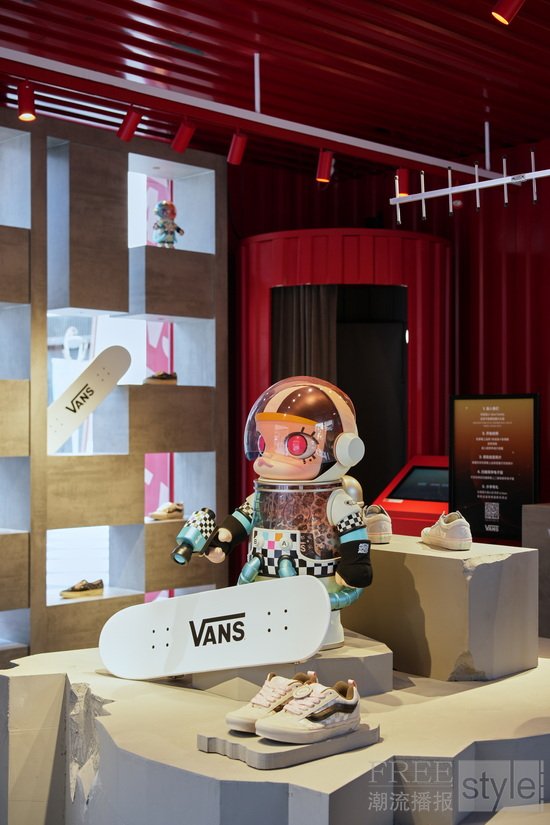 除了滑板赛场的激情,联名快闪亦以沉浸式场景延展 SPACE MOLLY 的冒险语汇。快闪店本体将 Vans 经典的鞋盒造型等比放大,在广场中央打造出一片巨型景观。店内产品展示区集中呈现 Vans x SPACE MOLLY 第二波联名鞋服与限定周边,在正式官宣发售之前带来了先行预览与购买渠道。趣味大头贴拍摄区同样人气火爆,消费者用限量专属SPACE MOLLY创意相纸记录精彩瞬间,在这里与SPACE MOLLY一同创造秋日假期的欢乐记忆。