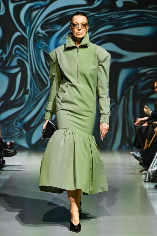 她的创作始于一个兼具个人性与前瞻性的设问:"如果我的祖父母坐上德罗宁时光车,该穿什么才能既融入2075年,又不背离1975年的自我?" 本系列以31套造型交出答卷,构筑起一个不被时代抹除的未来唐人街:麻将馆用加密货币的U盘结算,悬浮飞艇掠过莫特街,哥伦布公园的太极馆闪烁着镀铬光芒,点心服务员的制服更似星际舰队,而非传统装扮。