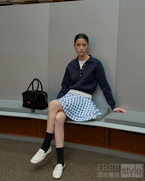 然而这份流动的夏日柔情,从未被直白书写。它们与硬朗的结构化元素结合:收腰的荷叶边夹克、勾勒身形的新式剪裁,以及重塑比例的阔腿长裤。面料在匠心细节中低语——往季的刺绣与纹理丰富的材质,皆被精心重现。臂弯处,品牌全新Mymi手袋为造型点睛,瞬间打造商务女性的刚毅风姿。对比美学成为本季的风格宣言:光泽对阵哑光,朦胧碰撞通透,柔韧抗衡精准。