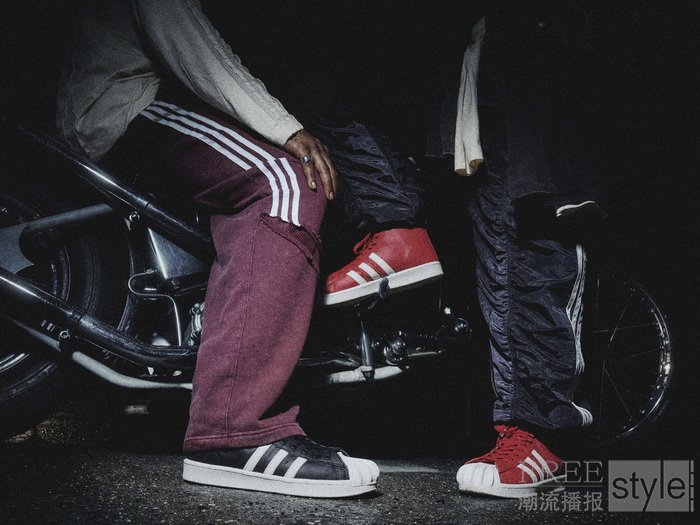 本次 2025 秋冬合作系列,旨在大胆颠覆运动传统美学规范,以韩国街头文化中叛逆的视觉语言重塑三条纹基因。来自中世纪的灵感与现代决斗者形象交织碰撞,经典鞋型 Superstar 被重新演绎为 Superstar Boot Luxe TB —— 采用特殊贝壳头与皮革鞋面打造,并点缀金属徽章作为细节。GSG9 靴款也以击剑与格斗为灵感迎来新诠释,拥有不对称鞋头、染色麂皮、皮革及 Cordura材质鞋面,并同样饰以 Thug Club金属徽章。