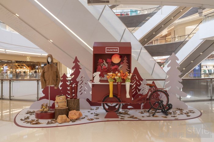 与此同时,HUNTER也在上海、杭州、青岛等多座城市的指定门店打造了秋季主题艺术装置。这些装置以艺术家温秋雯创作的秋季元素纸雕为装饰,搭配内置发光月亮的脚踏车装置,通过暖色调的灯光与秋日意象,为各地消费者营造出浪漫的沉浸式秋日氛围。