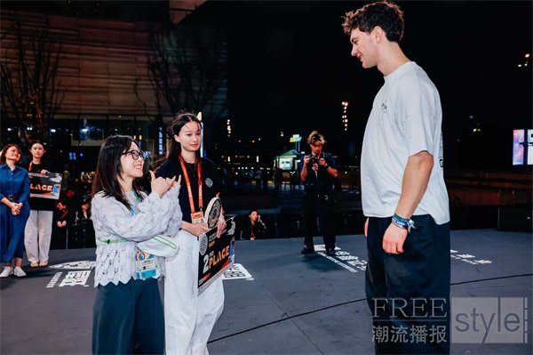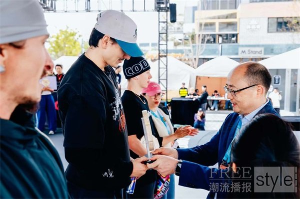 (龙头股份董事长党委书记 倪国华先生 为2025 FISE国际霹雳舞争霸赛冠军得主颁奖)