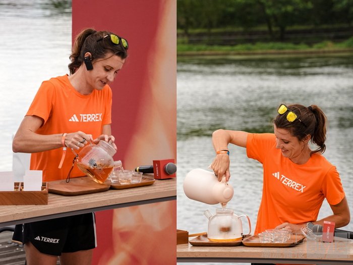 作为深耕自然疗法领域四年的研习者,Ruth向现场媒体与跑者阐释了自然疗法的科学原理,即通过草药调理、血液分析,帮助运动员精准调控训练负荷与身体恢复节奏。分享会现场,她还亲手体验中草药泡茶,以自然疗法的科学视角呼应东方的养生智慧,传递“身心统一”的越野跑哲学。