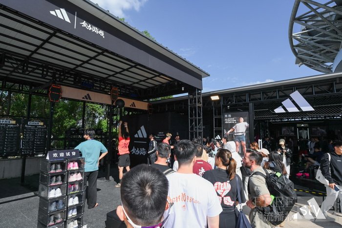 现场阿迪达斯专属展区同步开放全尺码 DROPSET 3 全力战将力量训练鞋供现场观众上脚试穿,感受产品在实际训练中的稳定与支撑。展区前人气高涨,吸引众多选手和观众驻足体验,他们纷纷试穿并在现场打卡留念。