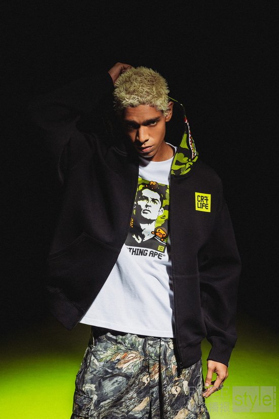 BAPE® × CR7® LIFE系列第三弹将于10月31日起率先在中国地区BAPE STORE®专门店发售,随后于11月15日登陆全球。更多精彩联名设计将在未来陆续揭晓。