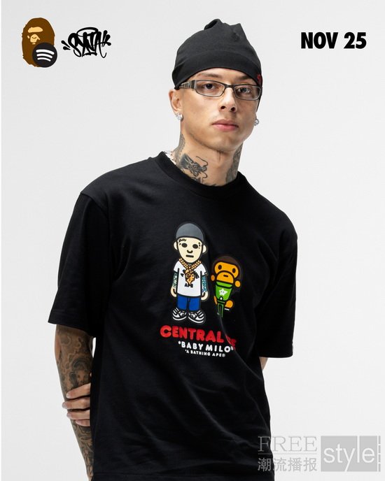 继SPOTIFY歌单《THIS IS CENTRAL CEE》首度披露后,CENTRAL CEE以BABY MILO®黑色短袖造型亮相,率先揭晓11月25日发售系列中尚未公开的广告型录。