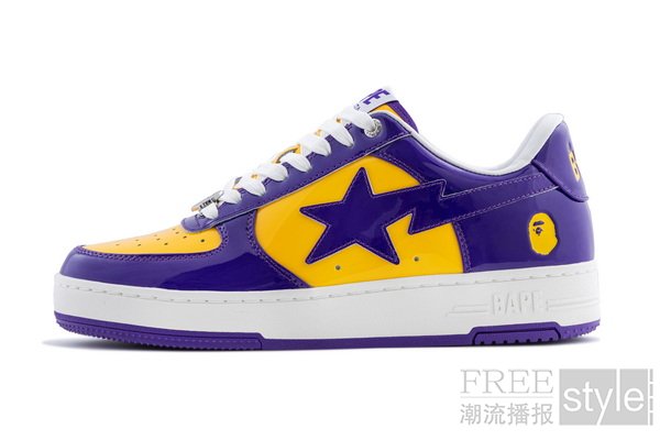 BAPE STA™全新系列将篮球运动的无畏能量与BAPE®代表性的街头风格相融合,共塑极具竞技激情的美学氛围,无论在球场内外皆能展现独特魅力。新作涵盖黑/灰、蓝/橙和紫/黄三款撞色设计,向传奇球队的经典配色致敬。鞋面采用奢华的全漆皮打造,以闪耀光泽诠释自信、激情与无畏的运动精神。