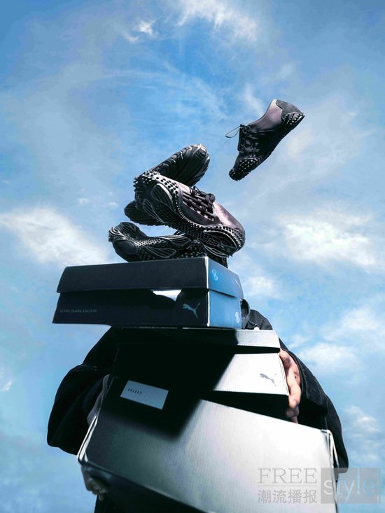全新PUMA × San San Gear联名系列,延续对机能美学的深度探索。整个系列以隐秘黑色系呈现,焕新演绎Talon鞋型,更带来全新版本Mostro Cage ; 服饰设计则融入户外运动科技元素,共同构筑该系列对机能美学的注解。