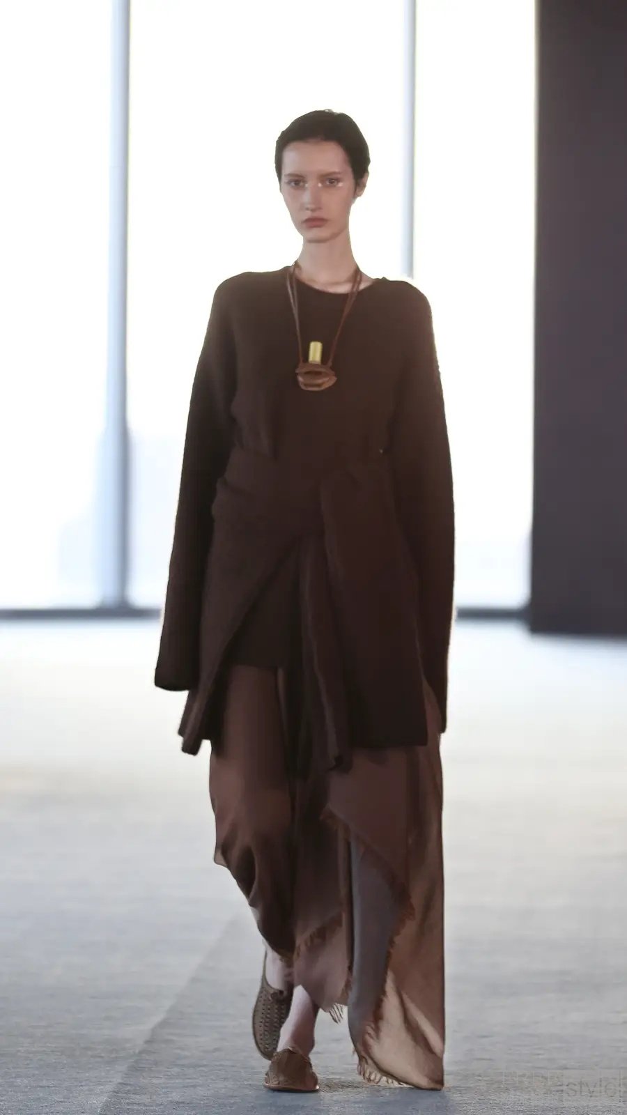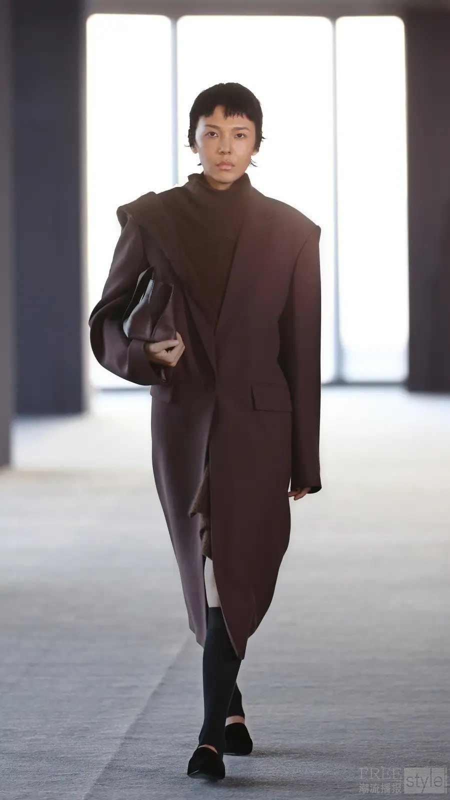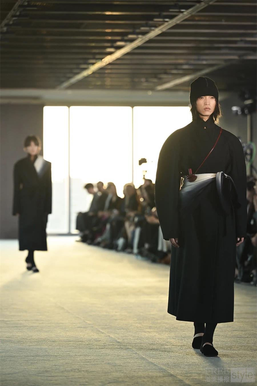 服装不仅是身体的遮蔽物,更是具有生命力、在空间中流动的立体廓形。它们随穿着者的姿态而变化,动态诠释“时间流逝”的概念。
