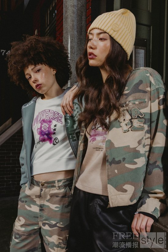 本季女装系列从两大设计主题出发:「AAPE COLLEGE」主题系列散发经久不衰的复古学院格调,由滑板与涂鸦文化衍生出的「AAPE SKATE」主题系列展现反叛不羁的个性底色,书写AAPE女孩百变多样的写意生活。拥抱无限创意,秋冬女装系列邀您走进以实用及潮流构筑的街头时装世界。