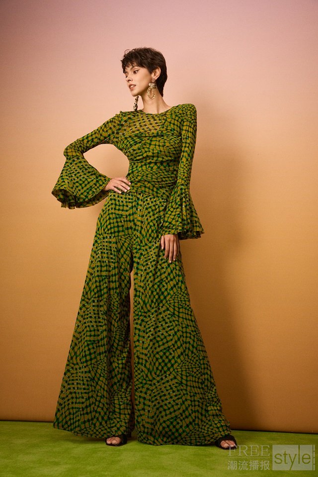 暮色四合,天际缀满星辰,DVF以都市夜色为画卷,开启一场光影与情感的温柔对话。霓虹的绚烂与月辉的清冷在夜空中共舞,如同晚宴中交织的视线与未尽的私语,编织着瞬间与永恒的浪漫诗篇。从午夜花园采撷舒展的枝叶与缠绵的藤蔓,用都会美学的笔触将其重构,让自然的灵动形态与时装的流畅轮廓完美相融。