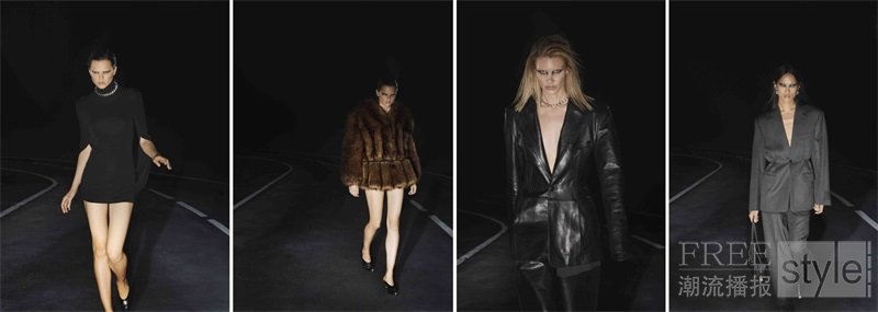 柔韧与锋芒的张力贯穿始终,哑光针织面料裁制的黑礼服,化身成雕塑女神的战袍,锋利性感,笃定自信。皮草外套重构为连衣裙,连帽衫升华至雍容华袍。