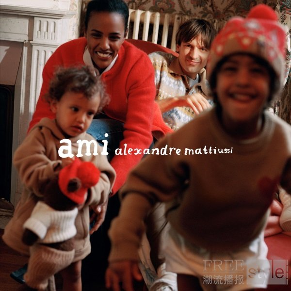 这是一个真实家庭的故事,以爱为语言,以舒适叠穿展现温暖日常:Eddie 身着饰有Ami de Coeur 图案的针织Polo 衫,Mona 身穿费尔岛提花与荷叶边装饰的针织斗篷,他们的孩子 Idris 和 Imani 则穿着Ami Paris 首次推出的童装服饰,与品牌的泰迪熊玩偶嬉戏玩耍。静谧的亲昵与洋溢的欢快交织于兼具松弛感与精致感的服饰之中。