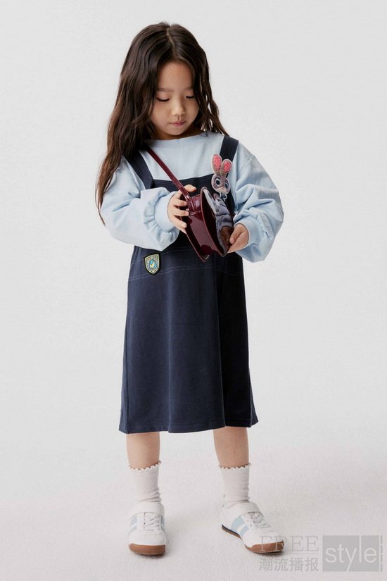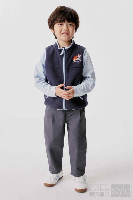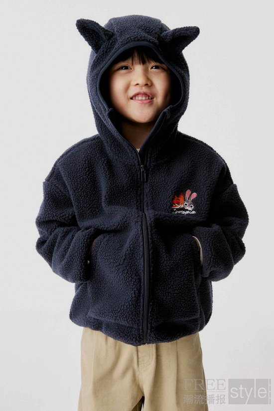此次合作系列运用角色经典造型和场景,融入全新色彩搭配与视觉元素,为冬日童装注入童趣与活力。男童系列采用警官制服的配色与细节,推出带有立体狐狸耳朵形状的摇粒绒外套,以及印有尼克与朱迪剪影的摇粒绒套装,彰显活泼率性;卫衣和长袖T恤选用轻盈透气面料,缀以角色印花图案,洋溢盎然气息。女童系列巧妙结合度假风花卉,推出俏皮牛仔夹克与领口点缀了兔耳造型的针织开衫;粉紫色调摇粒绒外套与背心更与花朵元素结合,尽显甜美灵动。此外,系列还特别推出男女童皆宜的假两件款式,还原经典造型,让孩子们在日常穿着中也能沉浸于奇妙的世界。