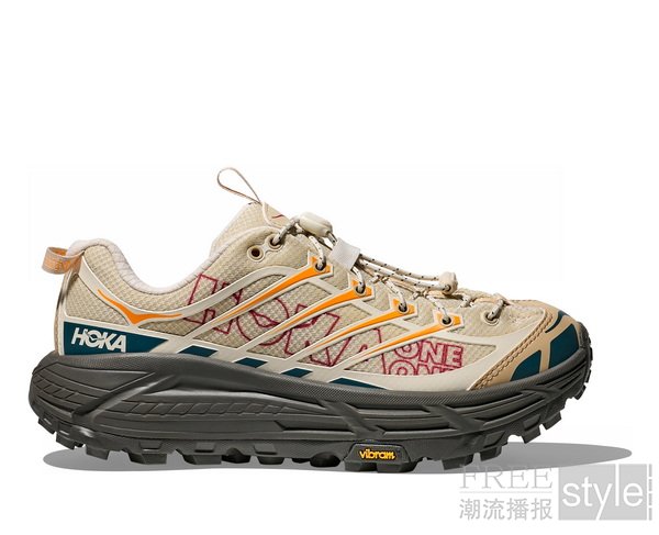 HOKA 山野街头风格力作MAFATE THREE2 WORDMARK以“奶油白、沙漠色”演绎复古潮流新章,将经典LOGO巧妙融入几何网格鞋面,在简约中构筑细节层次,沙漠色的运用营造出静谧而高级的视觉质感。该鞋款承袭MAFATE系列的性能基因,搭载双密度中底与嵌入式鞋床,在保障步伐流畅稳定的同时,更以温润中性色调串联起工装风与都市极简穿搭,成为连接复古运动美学与实用机能主义的风格桥梁,无论是搭配工装裤演绎山系美学,还是与休闲装束碰撞出混搭新意,皆能为都市探索注入蓬勃活力。