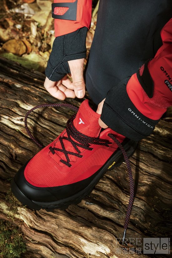 本季全新TITANIUM钛金系列在轻量化、耐磨性与防水性能上全面进阶,确保装备在雨林刮蹭、岩石摩擦及长距离负重行进或速穿中依然稳定表现。系列覆盖硬壳冲锋衣、防雨软壳、贴身层上衣、裤装、拓陆徒步鞋及背包等多品类,为不同山地场景提供系统化解决方案。色彩层面,该系列选择高饱和红、蓝配色,使其拥有造型视觉张力的同时,亦能匹配高强度徒步场景中的安全需求。