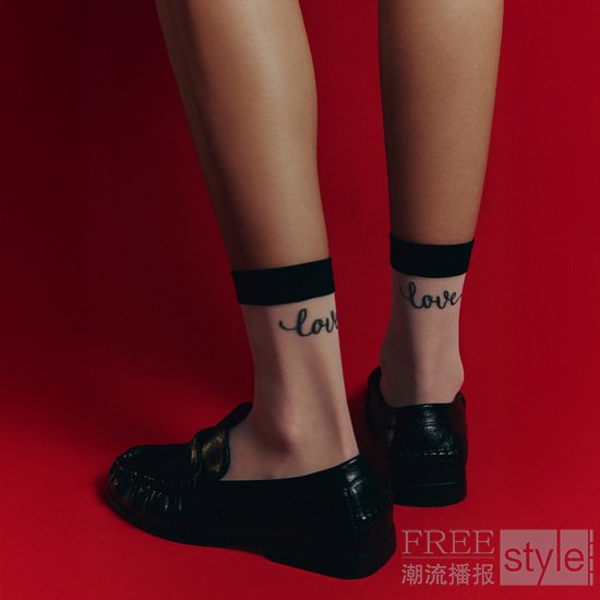 本系列亦推出多款设计感短袜,以精巧细节装点节日氛围感穿搭。爱心细闪短袜泛有细腻珠光,灵动爱心图案隐现其间,并搭配卷边袜口修饰踝部线条。字母拼色短袜以经典黑白色块碰撞拼接,构建出简约利落的视觉层次。黑色字母短袜宛如藏于节日下的朦胧暗语,在步履间悄然传递心动信号。网眼花纹短袜将经典织法与雅致蕾丝花纹相结合,诠释意式优雅生活美学。