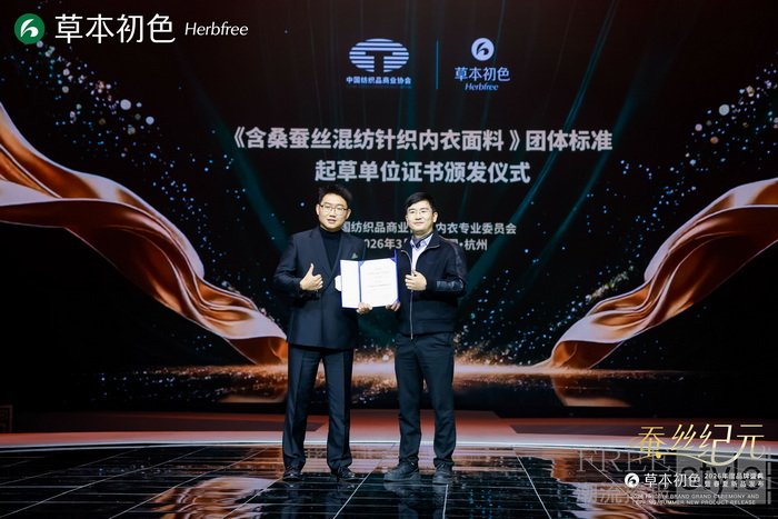 盛典现场的两大行业权威事件,标志着草本初色的行业地位与品质实力获得官方认可,也让品牌的行业标杆地位进一步夯实。品牌领衔起草《含桑蚕丝混纺针织内衣面料》团体标准起草单位证书,将以核心技术力量参与行业标准制定,推动桑蚕丝内衣行业的规范化、高品质发展;同时,新华社《中国名牌》揭牌仪式的隆重举行,中国纺织品商业协会秘书长王江波先生、浙江省服装行业协会会长郑念华先生、草本初色品牌代言人孙怡女士、草本初色品牌创始人陈培鑫先生、草本初色品牌联合创始人刘宝先生共同揭幕,标志着草本初色正式跻身中国优质名牌行列,权威背书的升级为品牌发展注入强劲动力。