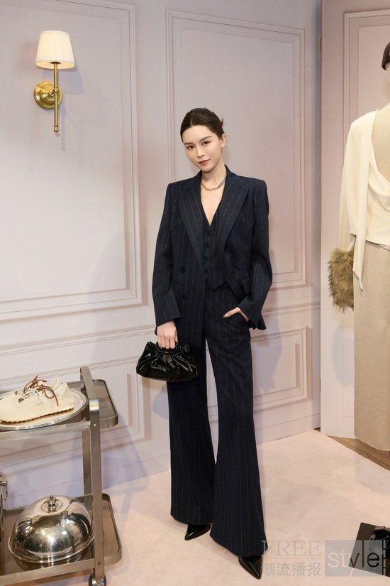 演员、模特文咏珊解锁Maje 2026秋冬系列竖纹闪钻西服三件套超季首穿,搭配Maje 2026春夏系列的Milpli迷你软皮手拿包、双色闪钻项链和金属饰边尖头高跟鞋,优雅亮相发布会现场。她或静立镜前,或徜徉于空间,以自信从容的姿态,静叙无声的现代女性力量。