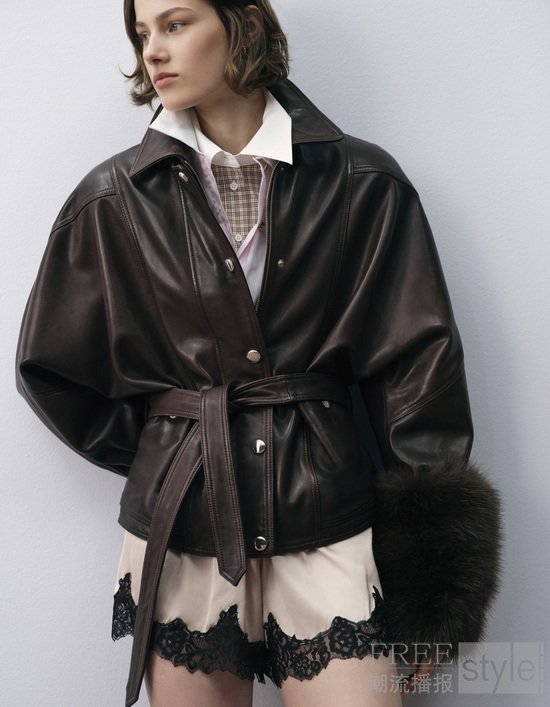 此次系列衣橱以标志性外套为核心,涵盖人造皮草、粗花呢、大翻领与精裁大衣等经典款式。内搭设计则融入了缎面质感与吊带裙廓形,把内衣元素巧妙转化为日常着装语言。凭借精致剪裁与可拆卸系带、腰带、蝴蝶结等多变细节的交糅碰撞,Maje实现了随时切换多重风格的无限可能。