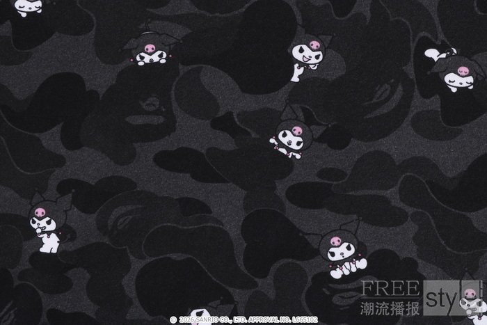 专为此番合作打造的原创迷彩印花,灵感源自一场趣味盎然的捉迷藏游戏,HELLO KITTY与KUROMI以生动形态藏身于BAPE®迷彩图腾之中,带来层次丰富的无限探索乐趣。