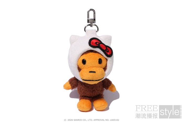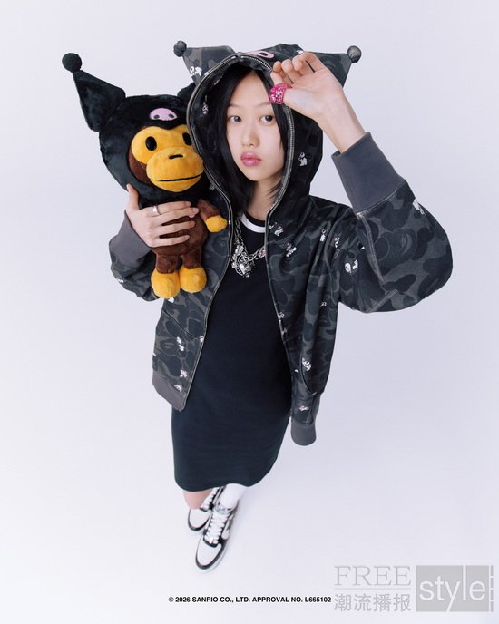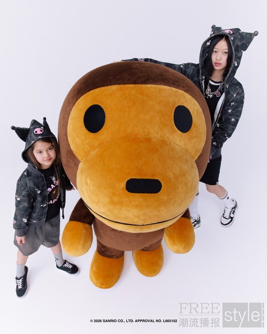 配饰系列同样精彩纷呈。两位明星主角从APE HEAD后面探出脑袋,这一俏皮图案用于ABC迷彩网眼帽的设计中,帽后加持精致刺绣图案。毛绒公仔钥匙扣则为BABY MILO®披上了HELLO KITTY与KUROMI的标志性外衣和尾巴,完成趣味变装,成为别出心裁的收藏必备单品。