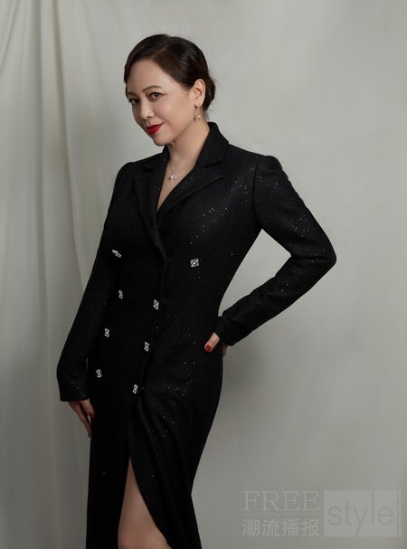 邓翠雯穿着 ST. JOHN 经典款针织珠片礼服亮相活动现场,经典黑色优雅大气,与零星的闪耀珠片打造出如星空般的浪漫视觉,映衬知性风采。