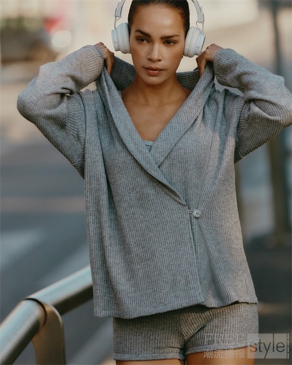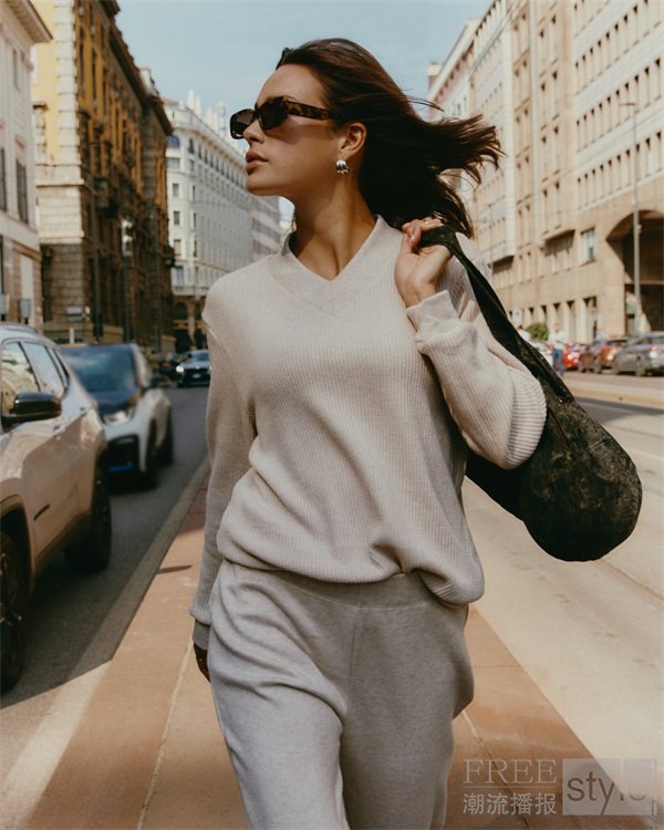 V领家居服套装则将居家的随性舒适巧妙融入日常穿搭中。流畅V领剪裁勾勒出慵懒而自信的气质;浅燕麦色百搭简约,无论是从容步入都市节奏,亦或是运动时的步履轻盈,皆能游刃有余、优雅舒展。