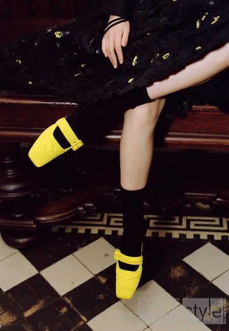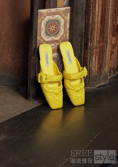 本系列对 Cecilie 设计的两款珍贵面料进行了升级改造,分别为饰有精美手绘绗缝刺绣的再生丝缎面料,以及由 Cecilie 的面料打造的独特镶拼面料。鞋履系列重新演绎了 Cecilie 2019 秋冬系列时装秀上首次亮相的图案与配色,延续了 Cecilie 惯用的黑白配色,并点缀斑斓色彩,例如该系列的柠檬黄 Camelia 穆勒鞋。整个系列设计精巧,工艺精细,并尽可能减少材料使用,防尘袋由往季系列剪裁剩余的面料缝制而成。包装风格优雅简约,堪称艺术珍品,每个鞋盒顶部均饰有广告大片中的独家印花图案。