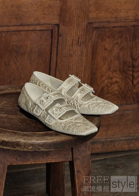 我们希望能忠实地表现出 Cecilie 设计风格的精髓所在,以及她对女性魅力的独到见解,用鞋履的形式重现她在服饰设计中蕴含的诗情画意。此外,本次合作还有另外一个主题,就是打造一个别具特色、注重环保,并能够传递积极理念的鞋履系列。因此,我们选择将 Cecilie 的精美面料升级改造成全新的定制镶拼面料,并选用再生丝缎材质打造手绘绗缝刺绣效果。”