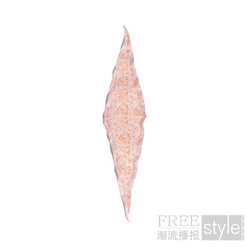 山茶花图案以清新抽象的碎花形式处理,缤纷如夏日的斑驳花影,明丽潋滟。斜裁工艺自然形成波浪状荷叶边,灵动俏皮。
