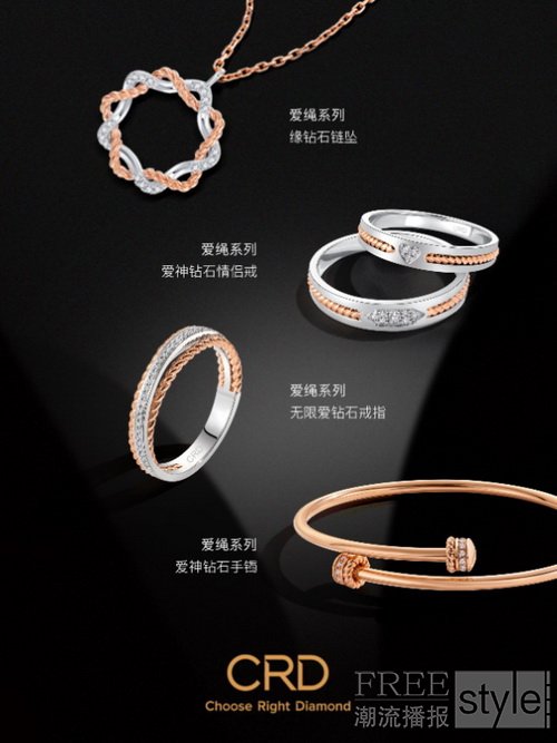 与品牌挚友一同上线的还有CRD克徕帝的全新产品爱绳系列。古希腊新婚夫妻双方会结下平结,祈祷姻缘能够牢固;传说中月老用红线牵引相爱之人,缔结美满姻缘。CRD以此为灵感,将绳结融入时尚设计,搭配CRD独有的真分色工艺,纯净铂金碰撞耀眼18K金,双色缠绕相接,每一面都耀目非凡,呈现出满载美好寓意与多重心意的钻戒、项链、耳饰、手镯等作品,点亮璀璨七夕,见证缱绻爱意。